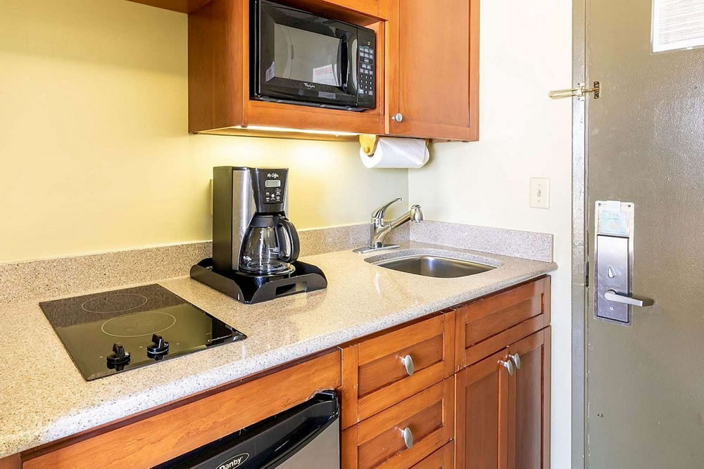 全室にキッチンまたは簡易キッチン、室内コーヒーメーカー、屋外ラナイ(バルコニー)を完備しています。一部の客室からは、遮るもののないオーシャンビューをお楽しみいただけます。